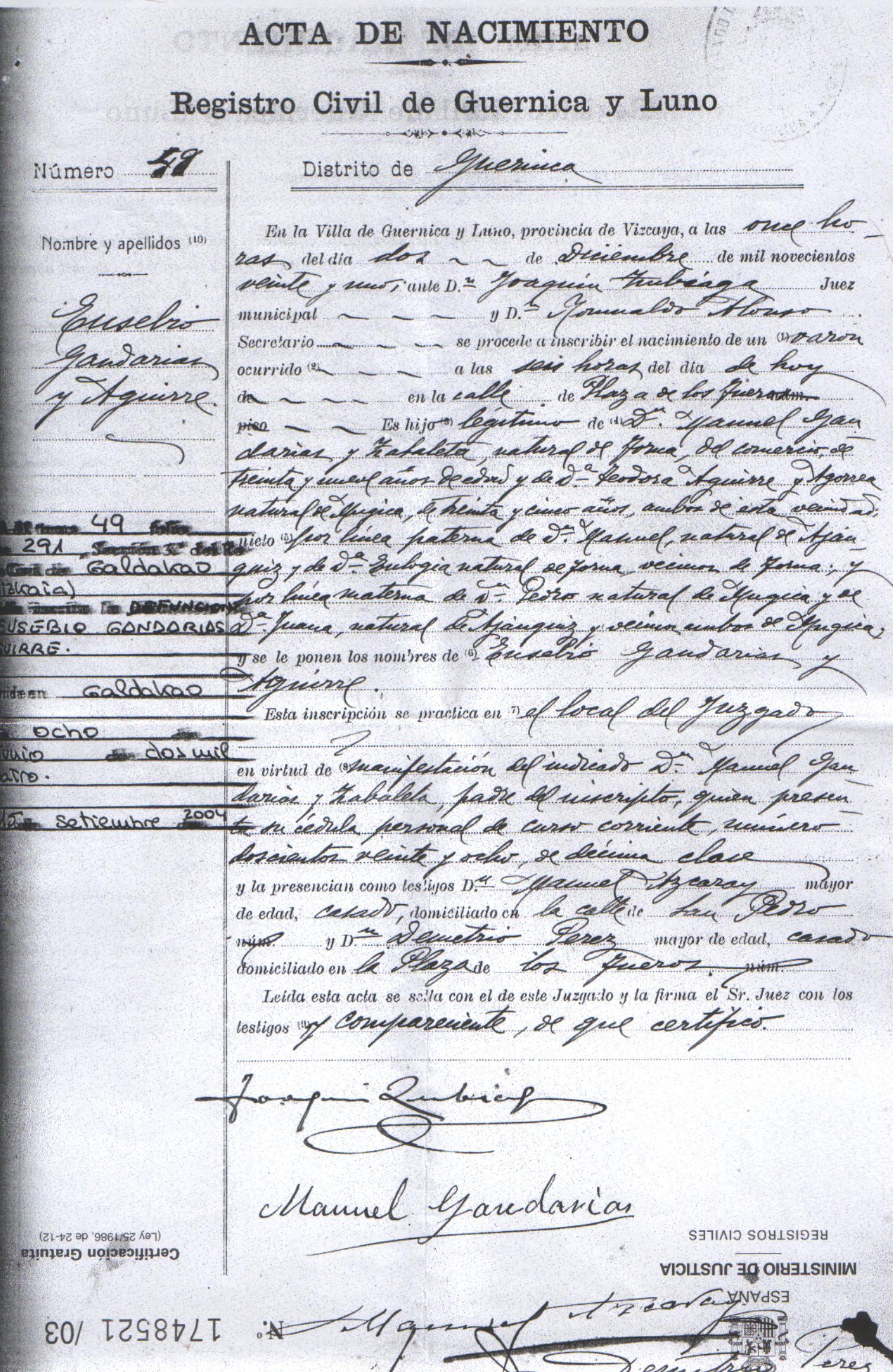 2. Eusebio Gandarias [Nacimiento] nació el 2 de Diciembre de 1921 en Gernika.